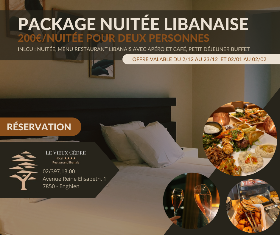 A partir du 𝟮 𝙖𝙪 𝟮𝟮 𝙙𝙚́𝙘𝙚𝙢𝙗𝙧𝙚 𝙚𝙩 𝙙𝙪 𝟮 𝙟𝙖𝙣𝙫𝙞𝙚𝙧 𝙖𝙪 𝟮 𝙛𝙚́𝙫𝙧𝙞𝙚𝙧, profitez de notre offre exclusive unissant 𝙪𝙣 𝙨𝙖𝙫𝙤𝙪𝙧𝙚𝙪𝙭 𝙧𝙚𝙥𝙖𝙨 𝙡𝙞𝙗𝙖𝙣𝙖𝙞𝙨 𝙚𝙩 𝙪𝙣𝙚 𝙣𝙪𝙞𝙩𝙚́𝙚 𝙙𝙖𝙣𝙨 𝙪𝙣𝙚 𝙙𝙚 𝙣𝙤𝙨 𝙘𝙝𝙖𝙢𝙗𝙧𝙚𝙨 𝙘𝙤𝙣𝙛𝙤𝙧𝙩𝙖𝙗𝙡𝙚𝙨.