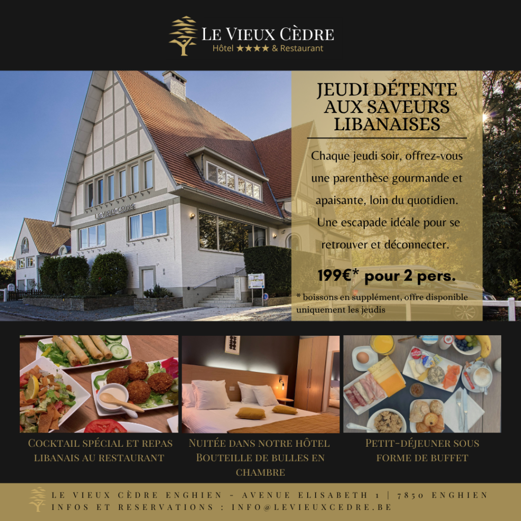 Bien plus qu’un hôtel et un restaurant, le Vieux Cèdre est un lieu de rencontre et de partage avec des services variés et uniques à Enghien!