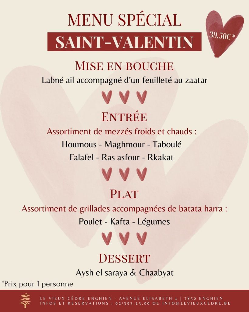 MENU DU VIEUX CÈDRE– 40,60 euros/pers.